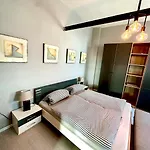 In diesem Apartment sorgen eine getrennte Toilette und eine Dusche für Ihren Komfort. Außerdem gibt es einen Haartrockner, Handtücher und Hausschuhe.